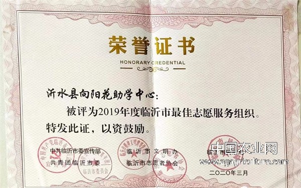 行得春风落秋雨,无私奉献收获多。沂水县向阳花助学中心广大志愿者也先后获得“慈善之星”、"爱心标兵”、"最美志愿者"、"沂蒙形象大使"、"助学工作先进个人"等众多荣誉称号。沂水县向阳花助学中心被中共临沂市委宣传部、临沂市文明办、临沂市民政局、共青团临沂市委、临沂市志愿者协会评为临沂市“最佳志愿服务组织”、被中共山东省委宣传部、省文明办、共青团山东省委等十三个部门评为“山东省最佳志愿服务组织”。2020年,被临沂市希望工程办公室评为临沂市“希望工程30年捐资助学突出贡献集体”。2021年被临沂市慈善总会评为临沂市“慈善助学先进单位”,“用爱托起明天的太阳—贫困家庭学生助学项目”被山东省民政厅评为“全省社会力量参与社会救助优秀项目?!?nbsp;