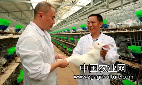 图片说明:宋加,明(右一)和养殖户分享养兔经验